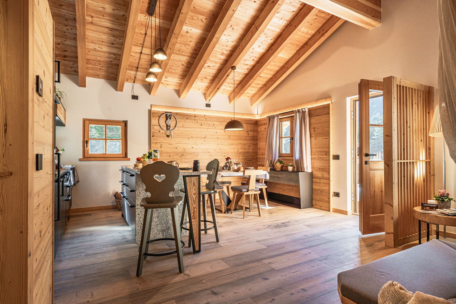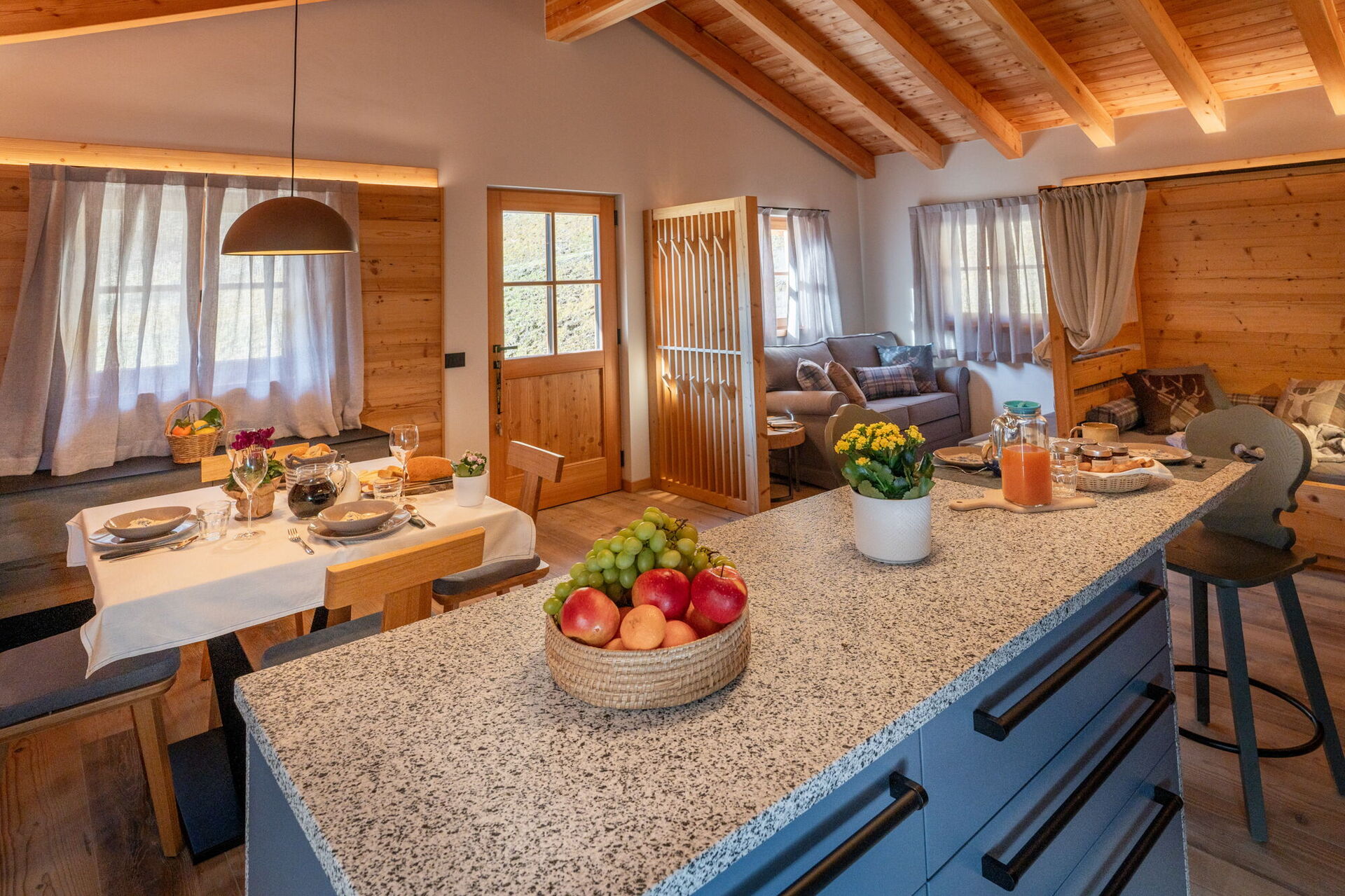 Naším cílem je, abyste zažili pravou dolomitskou dovolenou, ale s několika dalšími vymoženostmi: z tohoto důvodu najdete v kuchyni kromě pece na dřevo také praktickou elektrickou troubu; a abychom vás trochu rozmazlili, je vám k dispozici infrasauna, ideální pro relaxaci po túře v Dolomitech Brenta. Je jen na vás, jak budete v La Piciola trávit večery: pohledem na hvězdnou oblohu, možná ve společnosti plamenů grilu nebo poslechem toku potoka Algone, nebo čtením knihy na pohodlné pohovce za doprovodu večerního ticha, které mohou nabídnout jen hory.