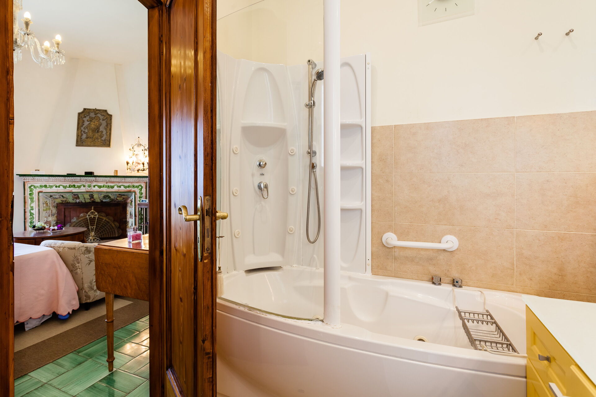 Bedroom + Ensuite Bathroom 1: double bed, WIFI internet, air conditioning, television, working desk, whirlpool bathtub, basin, toilet, bidet, shower, hairdryer, exit to the terrace.