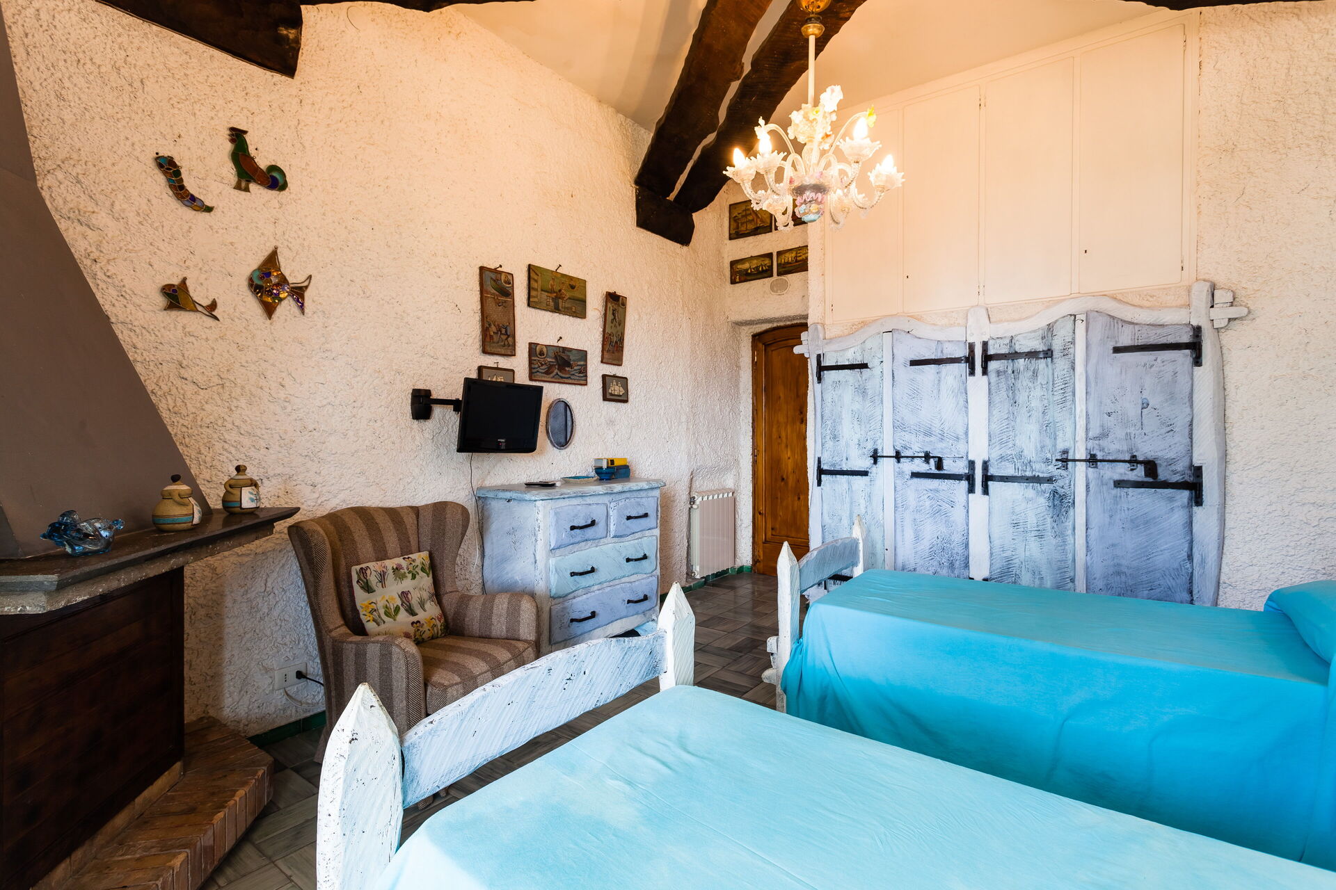 Bedroom 2: two single beds, WIFI internet, air conditioning, television, armchair, exit to the terrace.