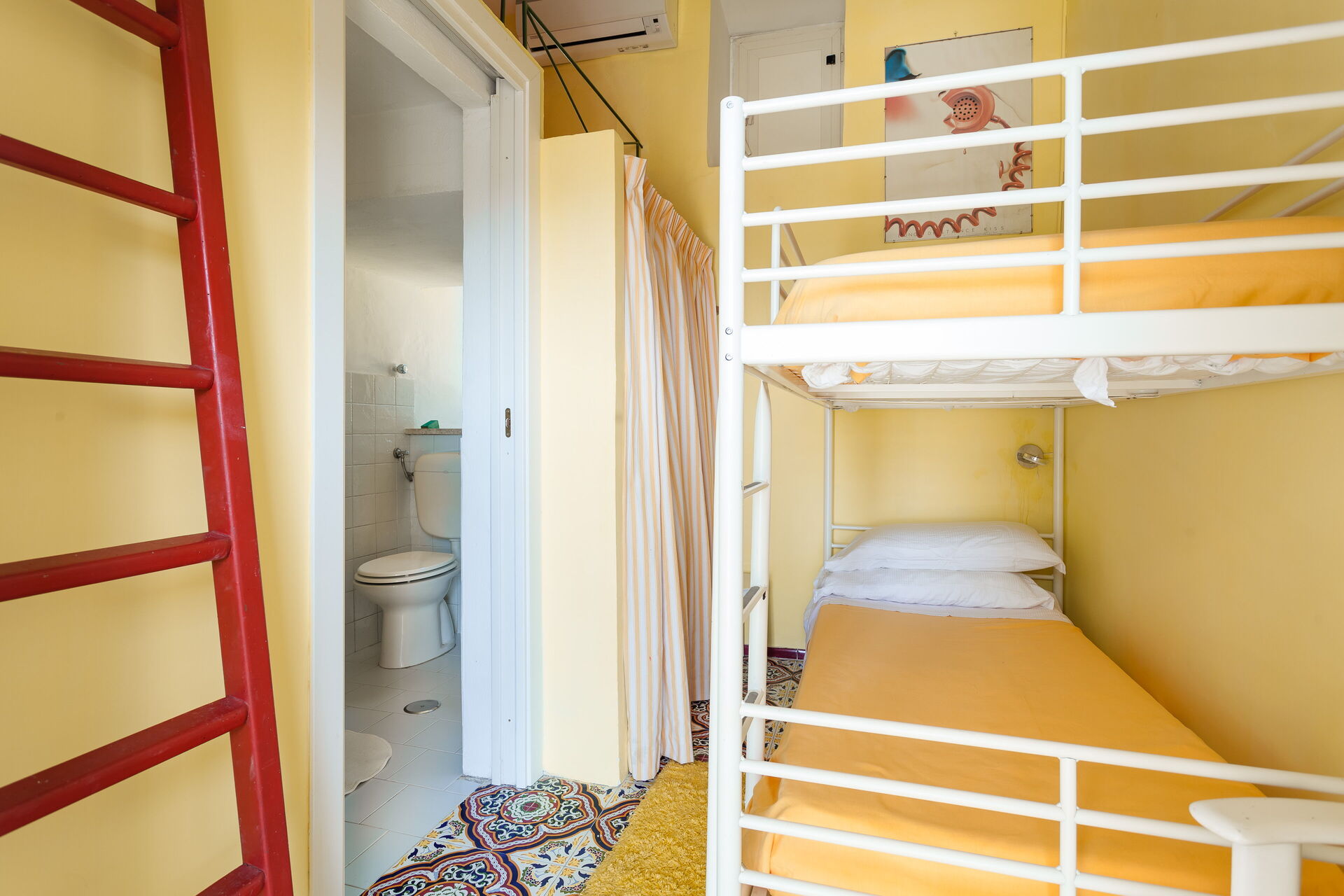 Bedroom + Ensuite Bathroom: bunk bed, WIFI internet, basin, toilet, shower, exit to the garden.