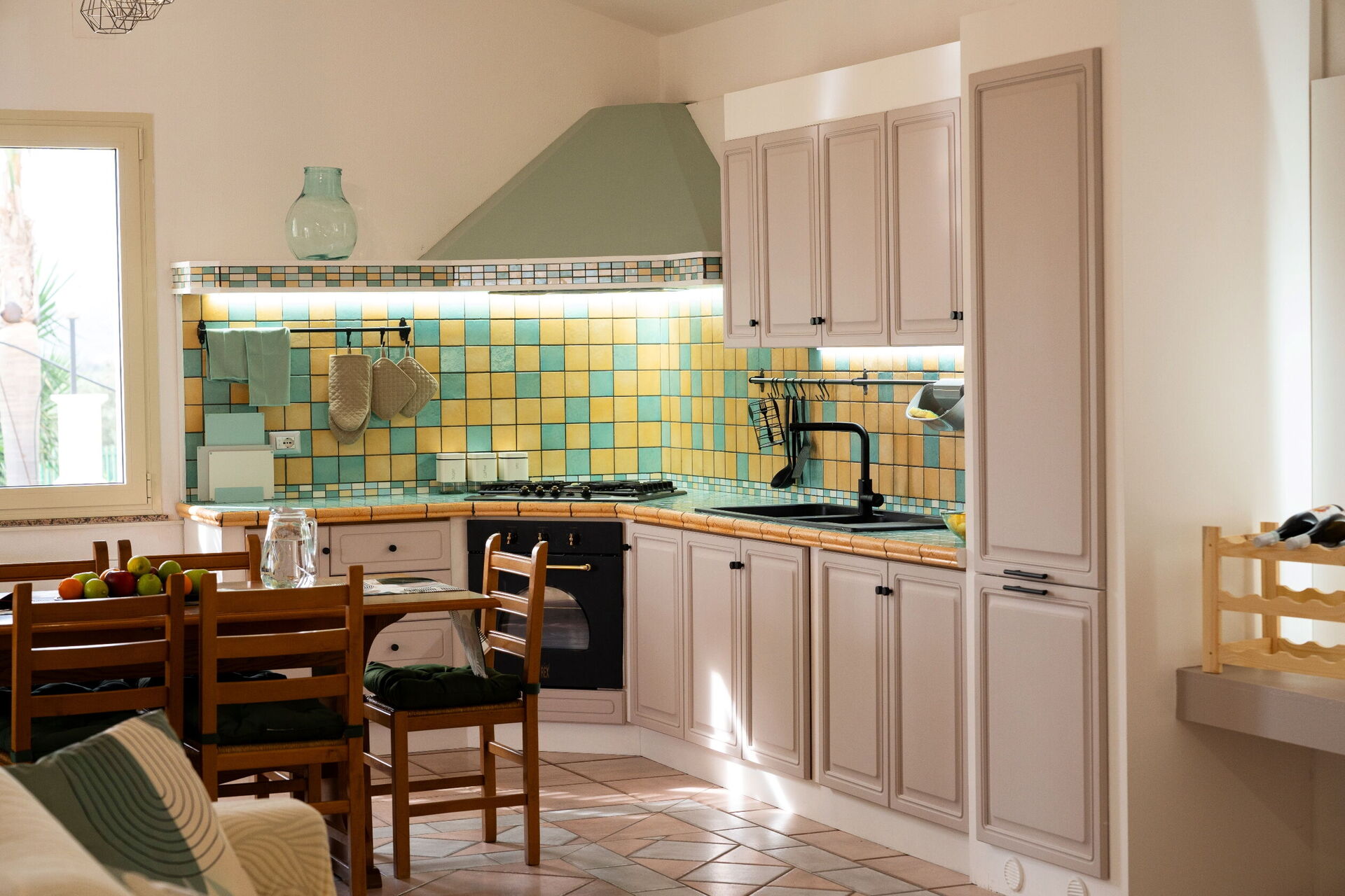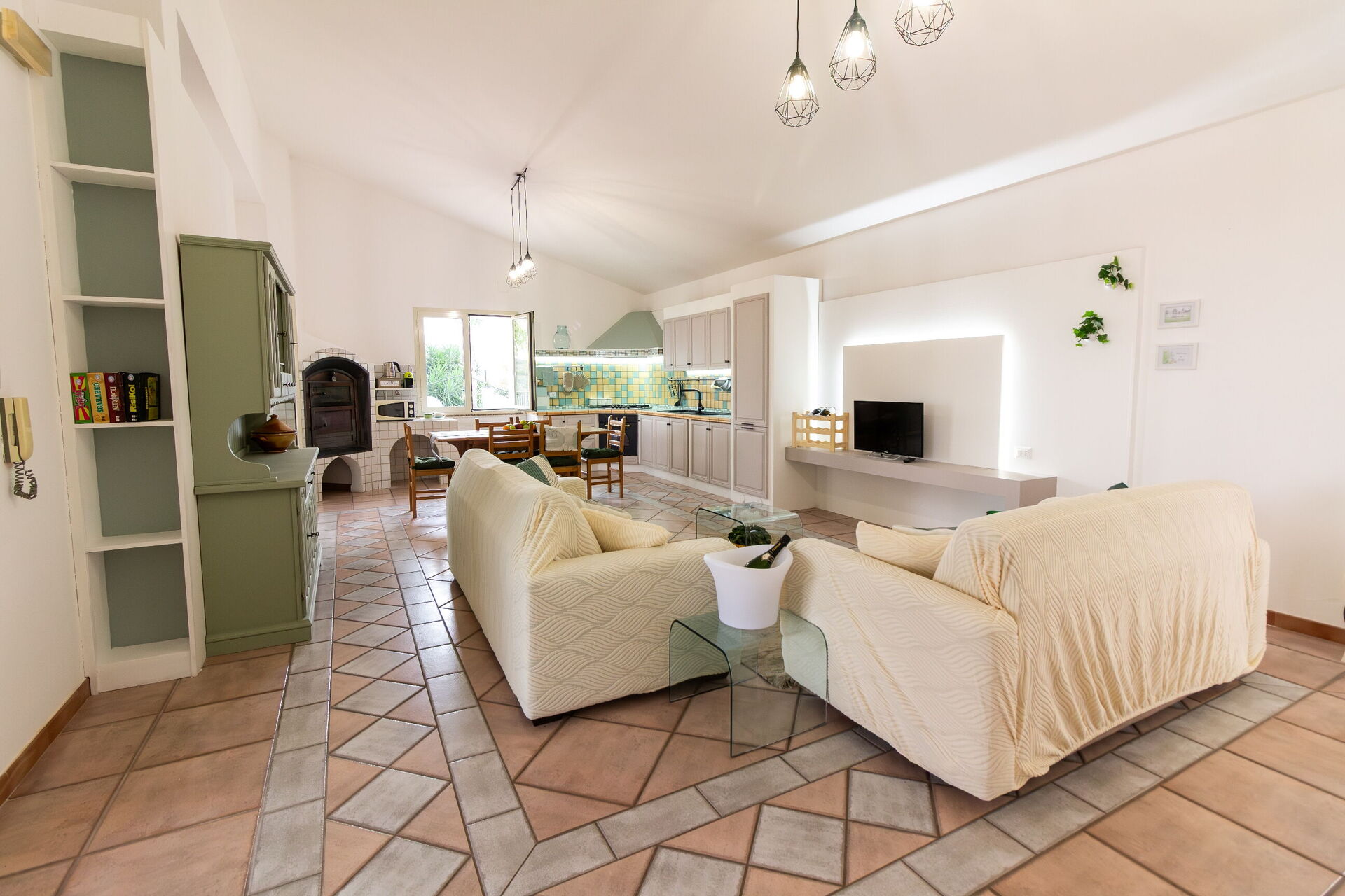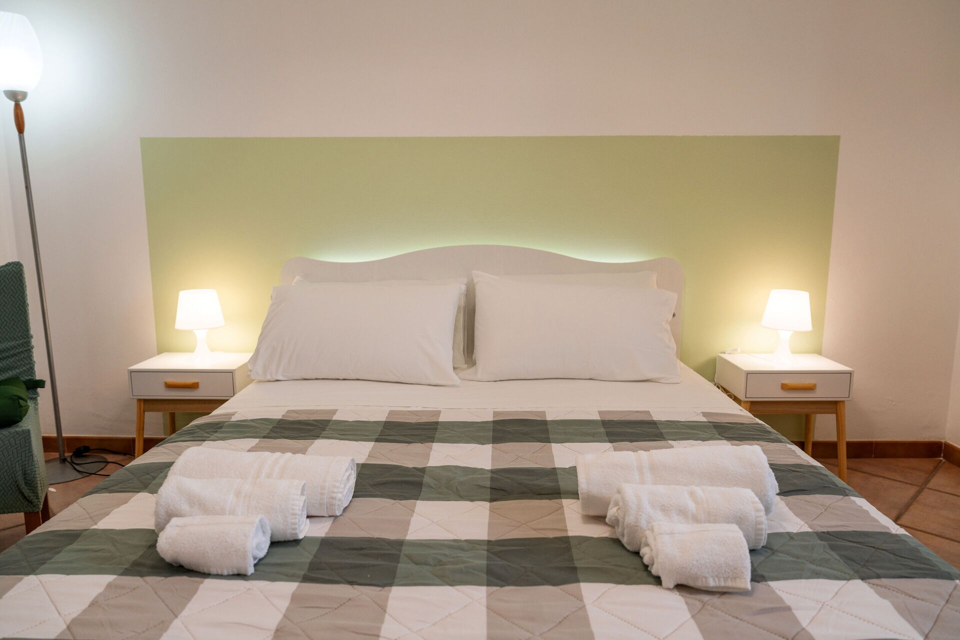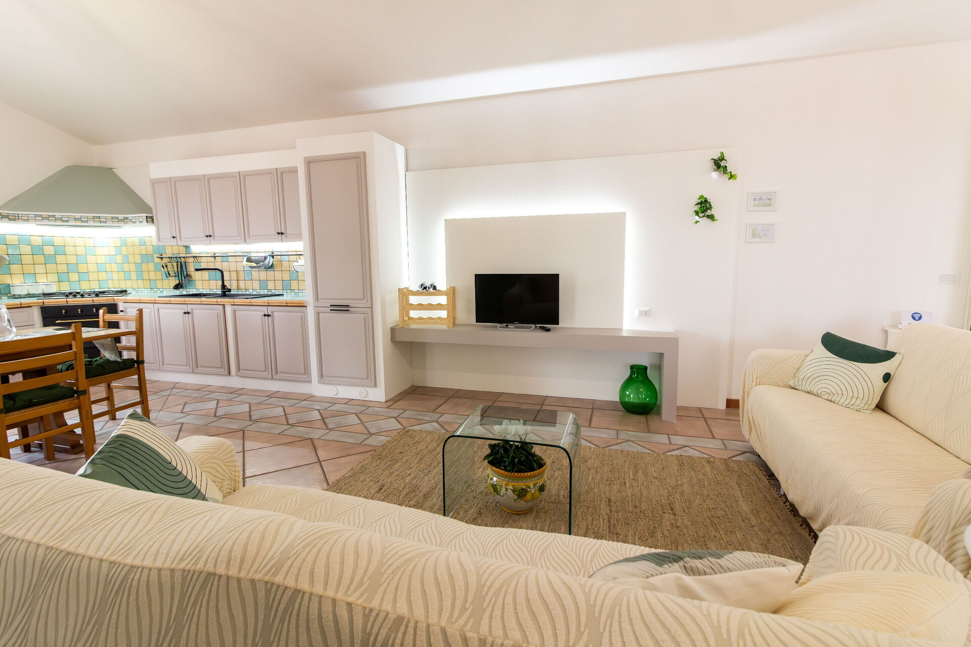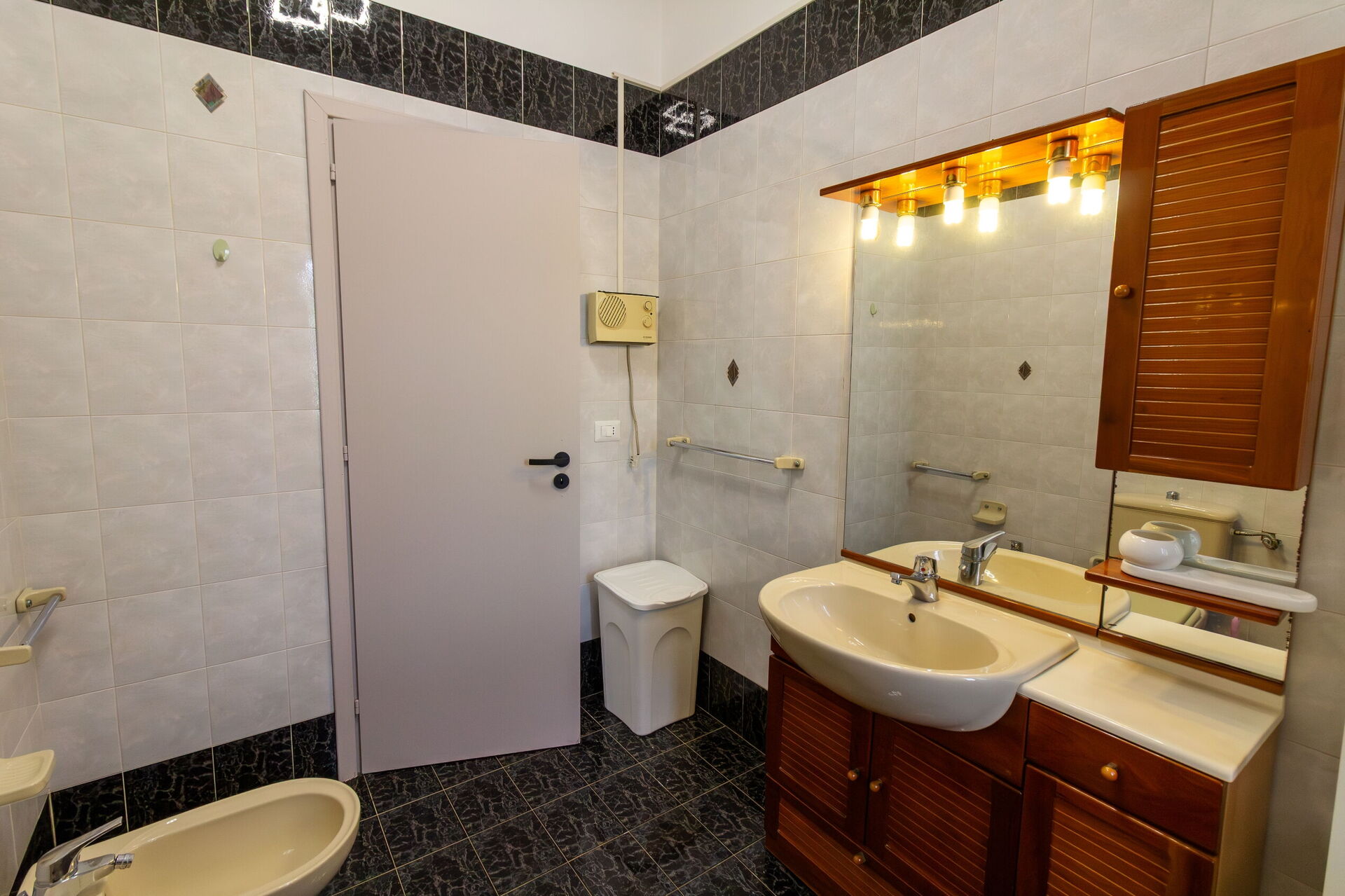 Kitchen + living room (50 m2): well equipped kitchen, dining table, fridge, freezer, microwave, stove top, oven, toaster, italian coffee machine, sofa, sofa bed, WIFI internet, air conditioning, satellite tv, television, co2 detector, exit to the garden, exit to the veranda.