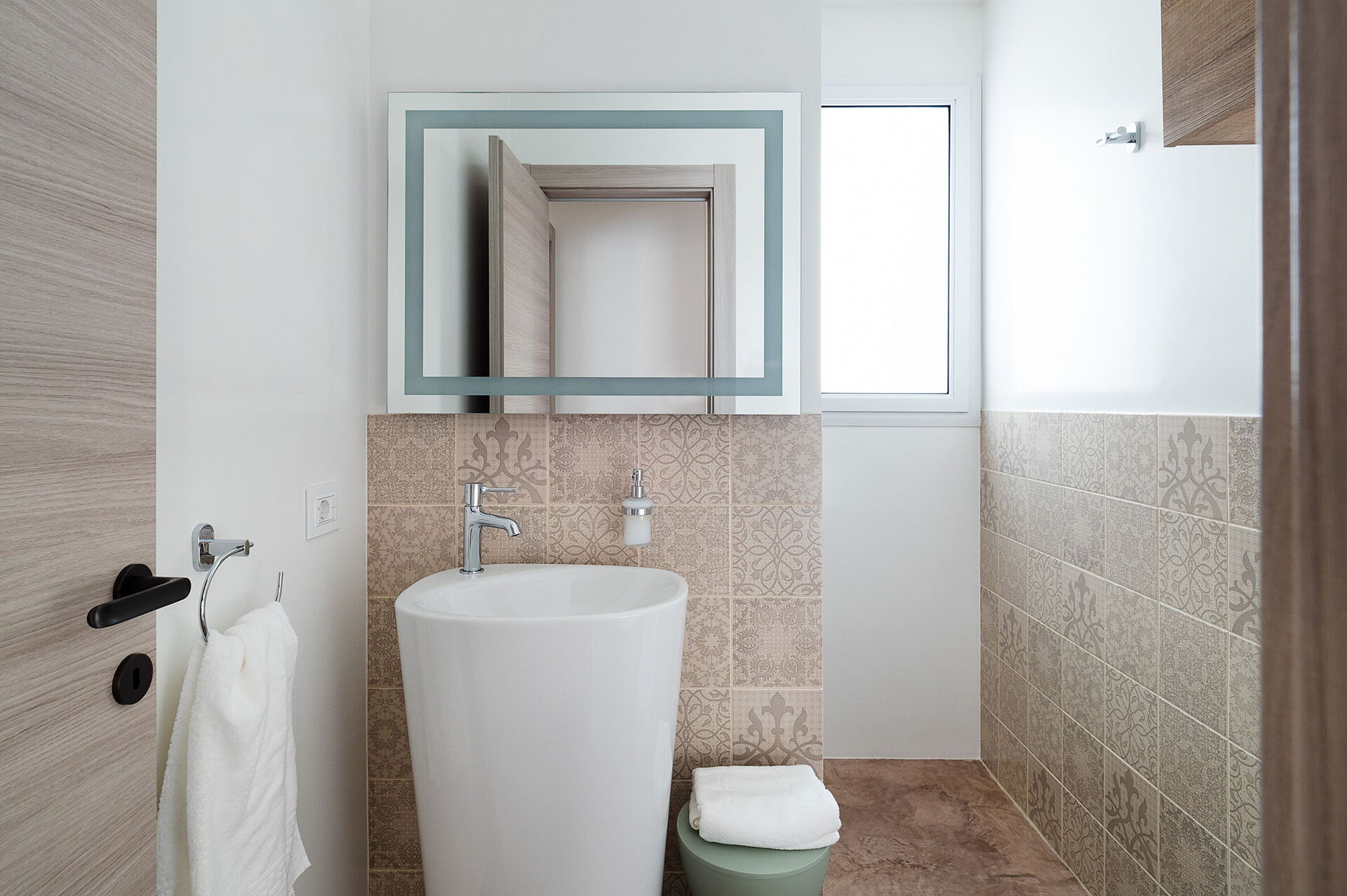 The holiday villa comes also with air conditioning, internet Wi-Fi, sat-TV, iPod docking station, washing machine, dishwasher, safe and external shower.