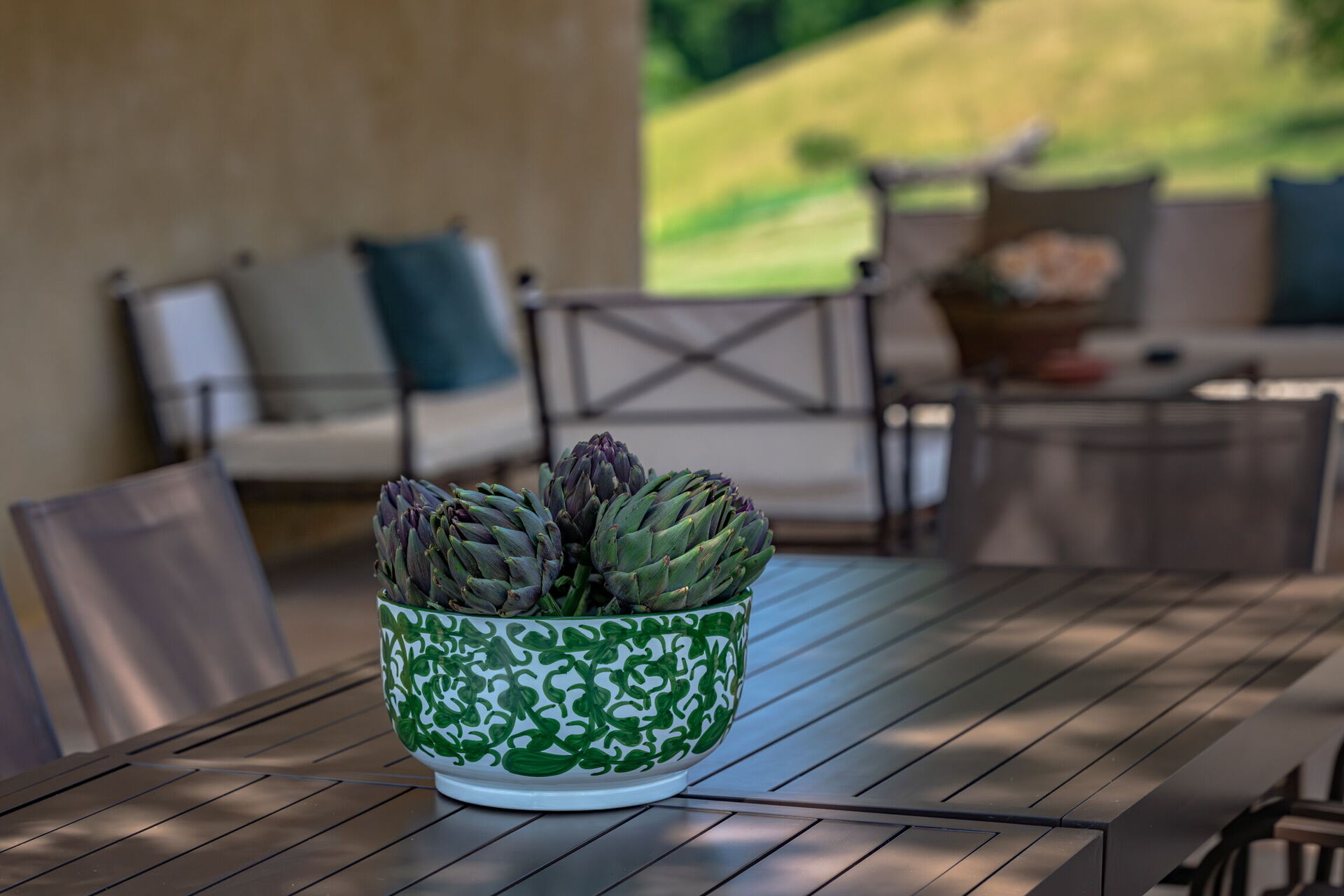 Veranda: al fresco dining, garden furniture.