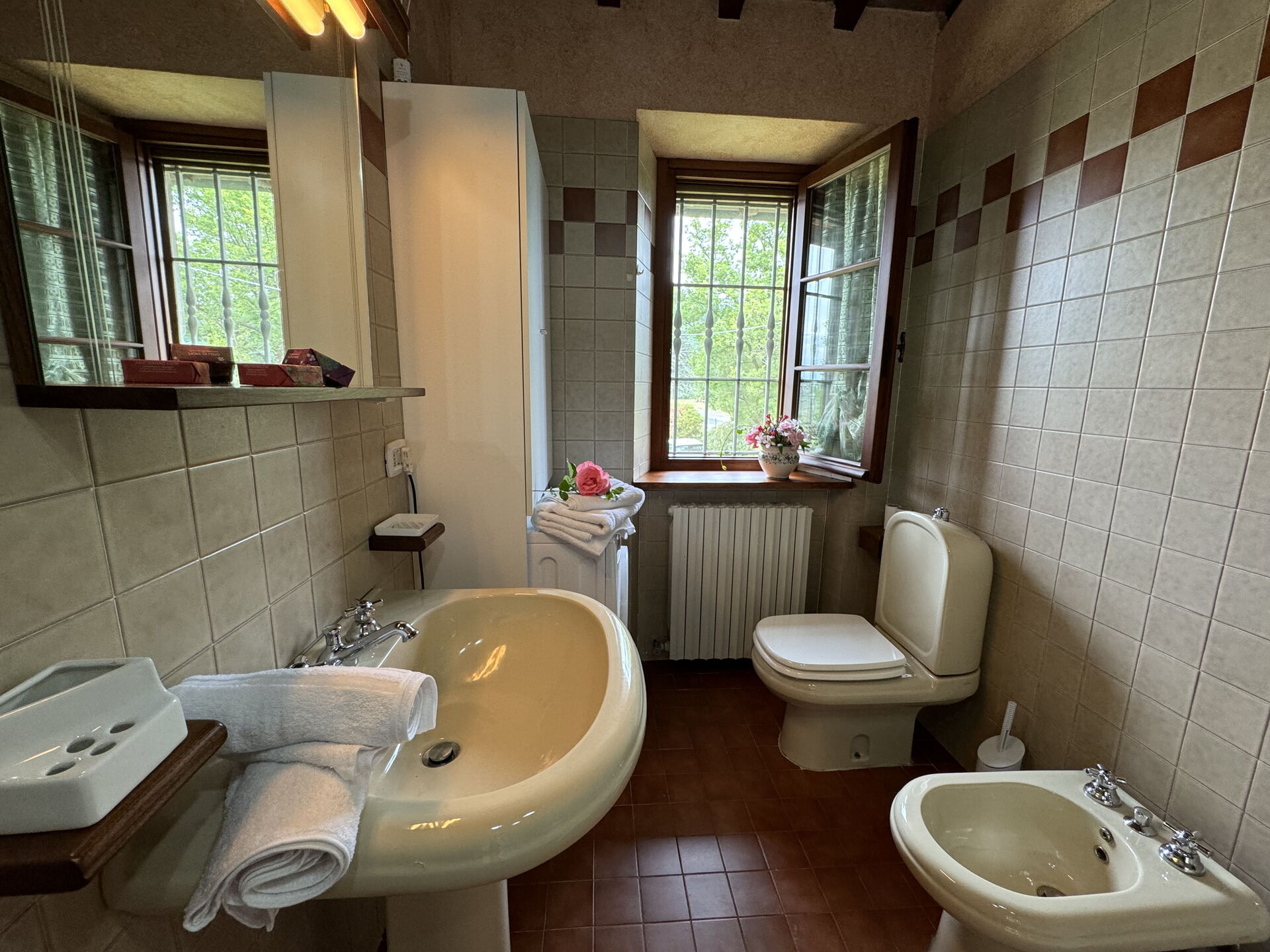 Bathroom: basin, toilet, bidet, bathtub, shower, hairdryer, mosquito net.