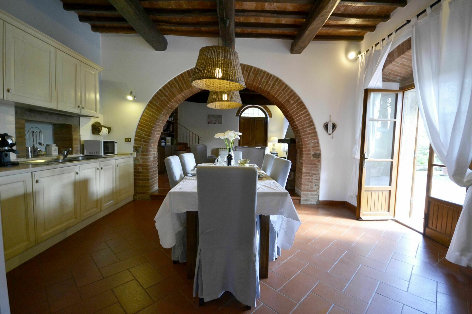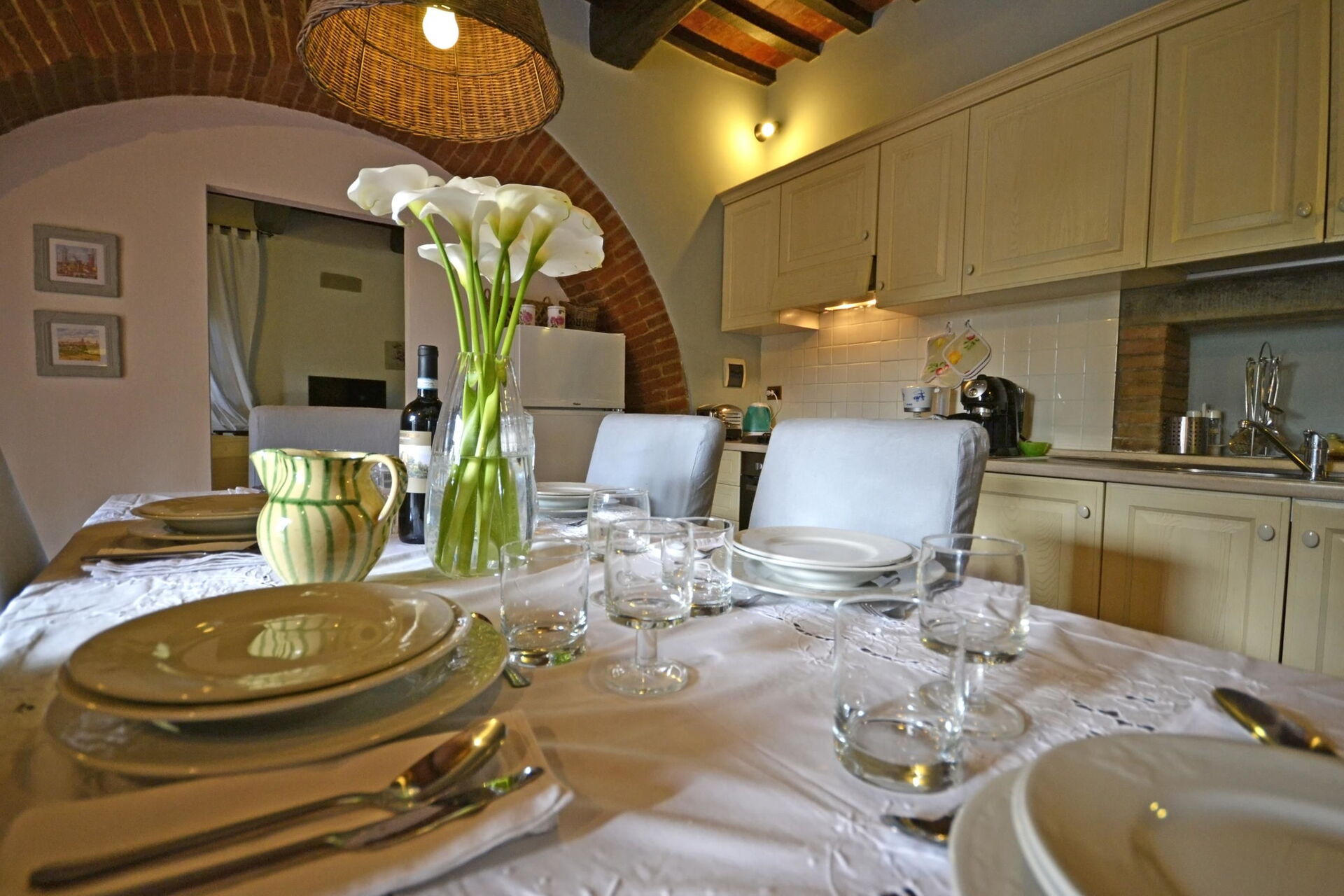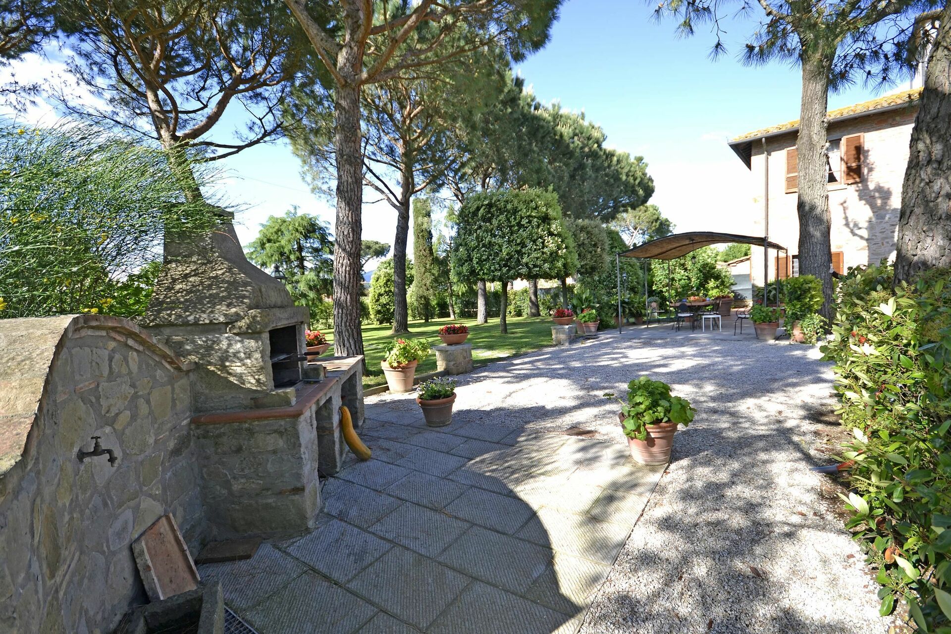 After arriving at Casa i Pini you’ll find a lovely clean well-maintained property with views of the hills ideal for a peaceful vacation in Tuscany. After a hectic day of sightseeing, spend some time with friends and family poolside enjoying a glass of wine - a perfect way to relax at the end the day. Dining with friends and family is a huge part of the Tuscan culture. Take advantage of the well-equipped kitchen to prepare meals using local produce while on your vacation. The kitchen includes coffee machine, microwave, toaster and refrigerator, as well as, plenty of tableware and cutlery for up to eight people. Dine 'al fresco' like a real Tuscan, the fully furnished garden is the ideal setting to enjoy food, family and the lovely Tuscan weather.