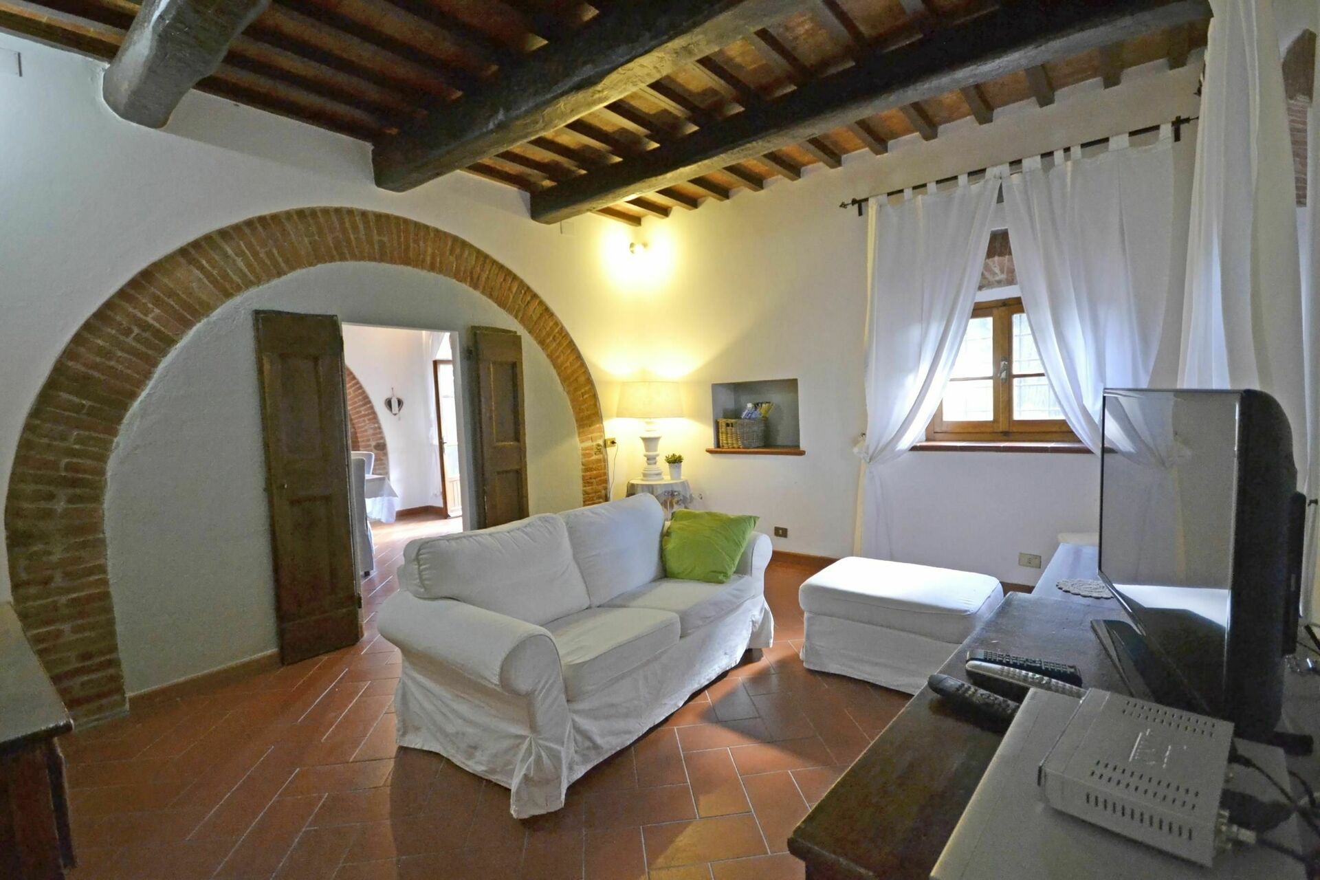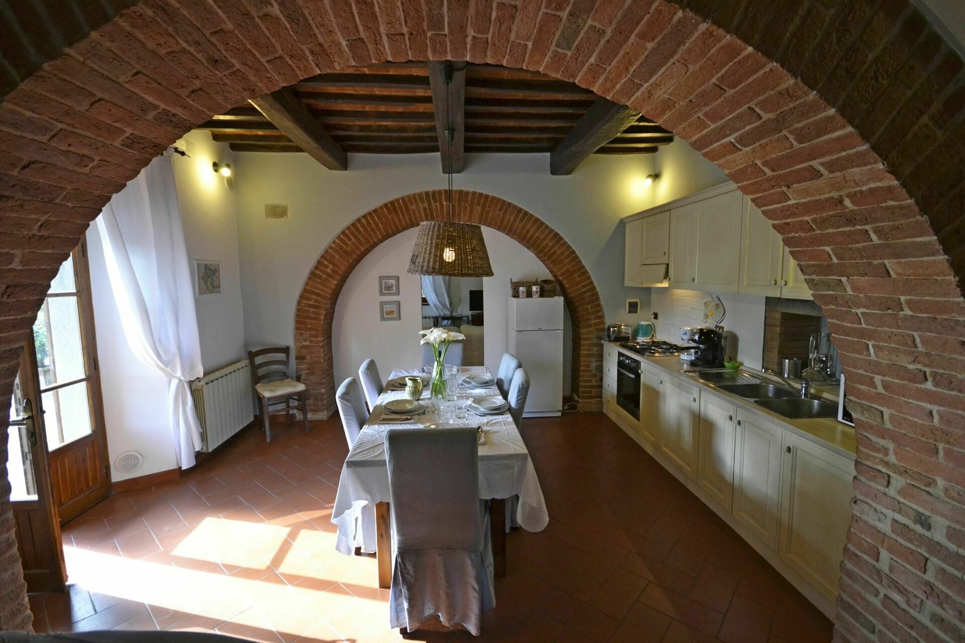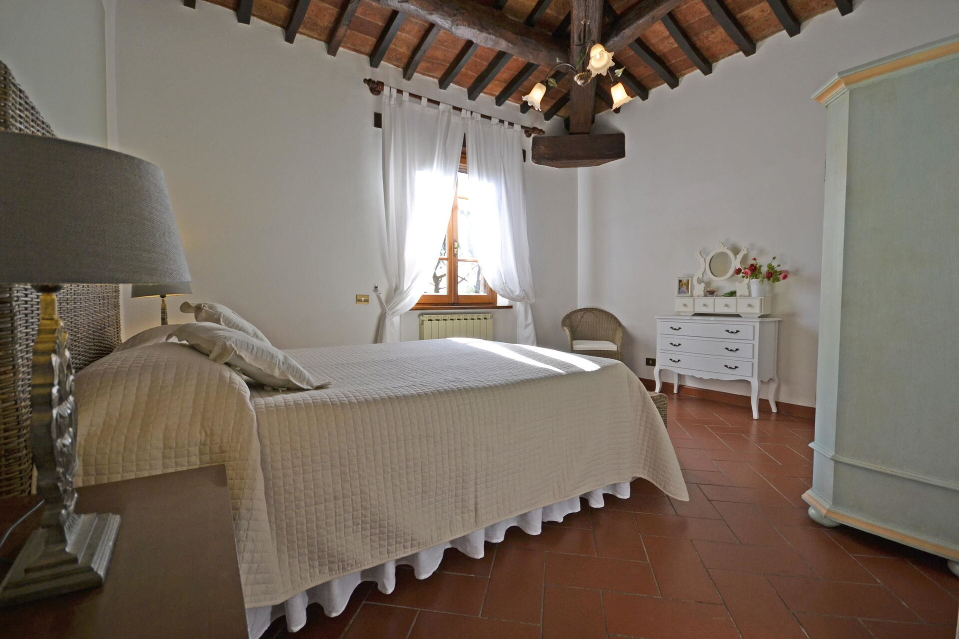 After arriving at Casa i Pini you’ll find a lovely clean well-maintained property with views of the hills ideal for a peaceful vacation in Tuscany. After a hectic day of sightseeing, spend some time with friends and family poolside enjoying a glass of wine - a perfect way to relax at the end the day. Dining with friends and family is a huge part of the Tuscan culture. Take advantage of the well-equipped kitchen to prepare meals using local produce while on your vacation. The kitchen includes coffee machine, microwave, toaster and refrigerator, as well as, plenty of tableware and cutlery for up to eight people. Dine 'al fresco' like a real Tuscan, the fully furnished garden is the ideal setting to enjoy food, family and the lovely Tuscan weather.