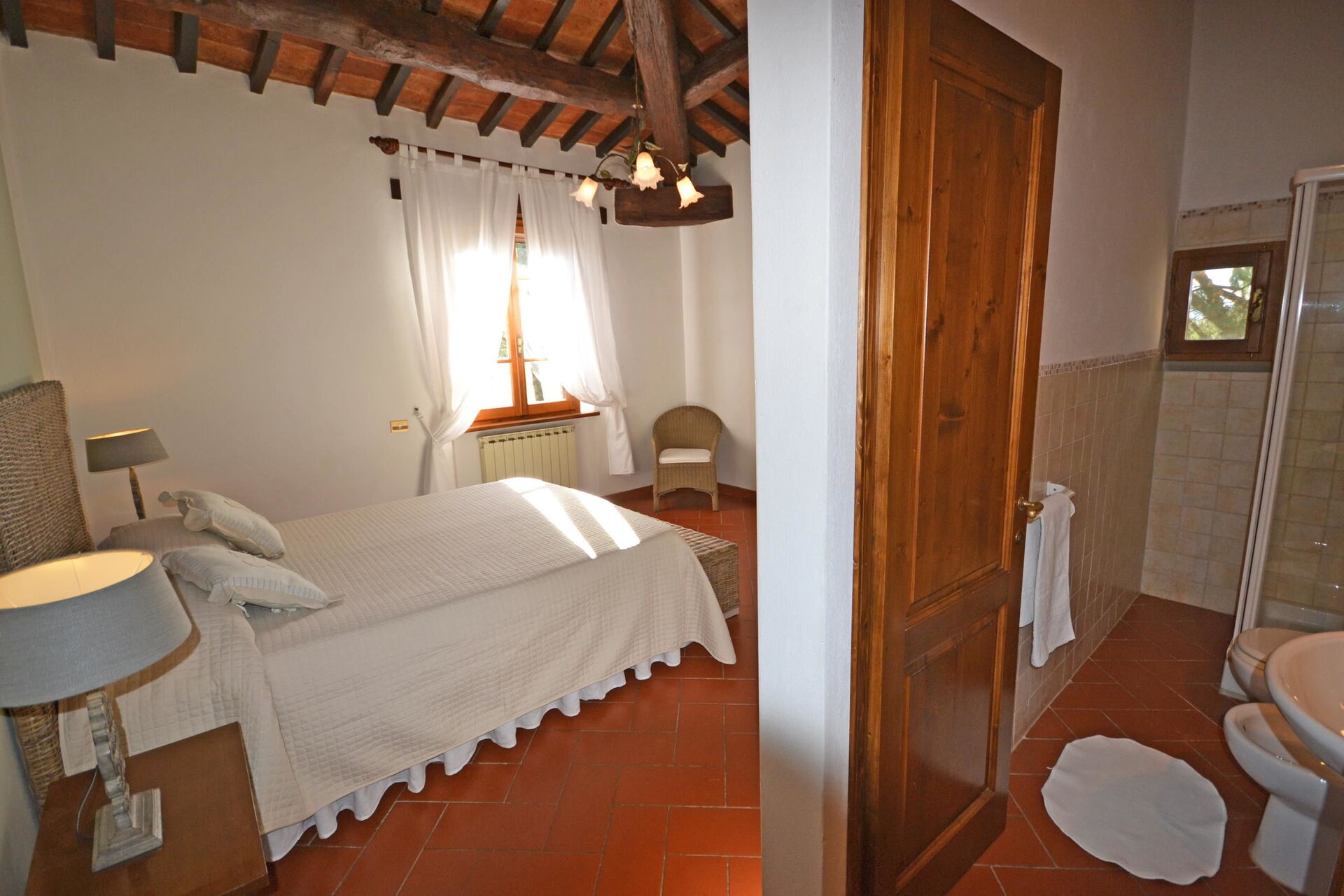 Bedroom + Ensuite Bathroom: double bed, WIFI internet, air conditioning, armchair, basin, toilet, bidet, shower, hairdryer.
