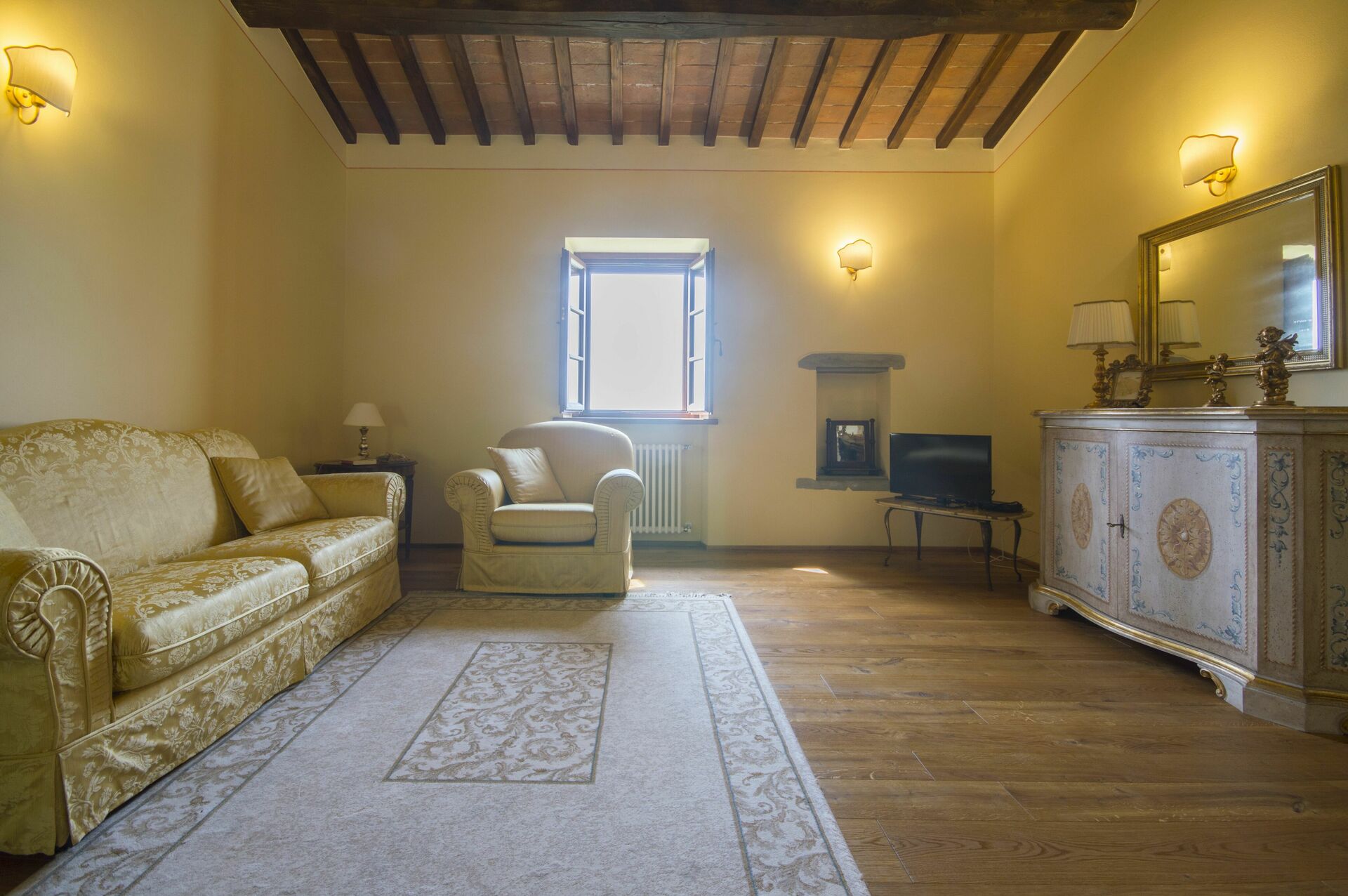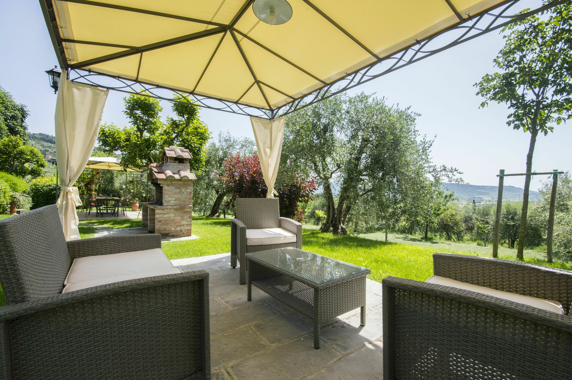 After arriving you will be greeted by the owner or manager where you’ll find a lovely clean well-maintained property with views of the city and the hills perfect for a splendid vacation in Tuscany. After a hectic day of shopping, spend some time with friends and family poolside enjoying a glass of wine - a perfect way to relax at the end the day. Sharing a meal with friends and family is a huge part of the Tuscan culture. Take advantage of the well-equipped kitchen to prepare meals using local produce while on your holiday. The kitchen includes coffee machine, microwave, toaster, stove and refrigerator, as well as, plenty of tableware and cutlery for up to 13 people. Dine 'al fresco' like a real Tuscan, the fully furnished terrace is the perfect setting to enjoy food, family and the nice Tuscan weather.