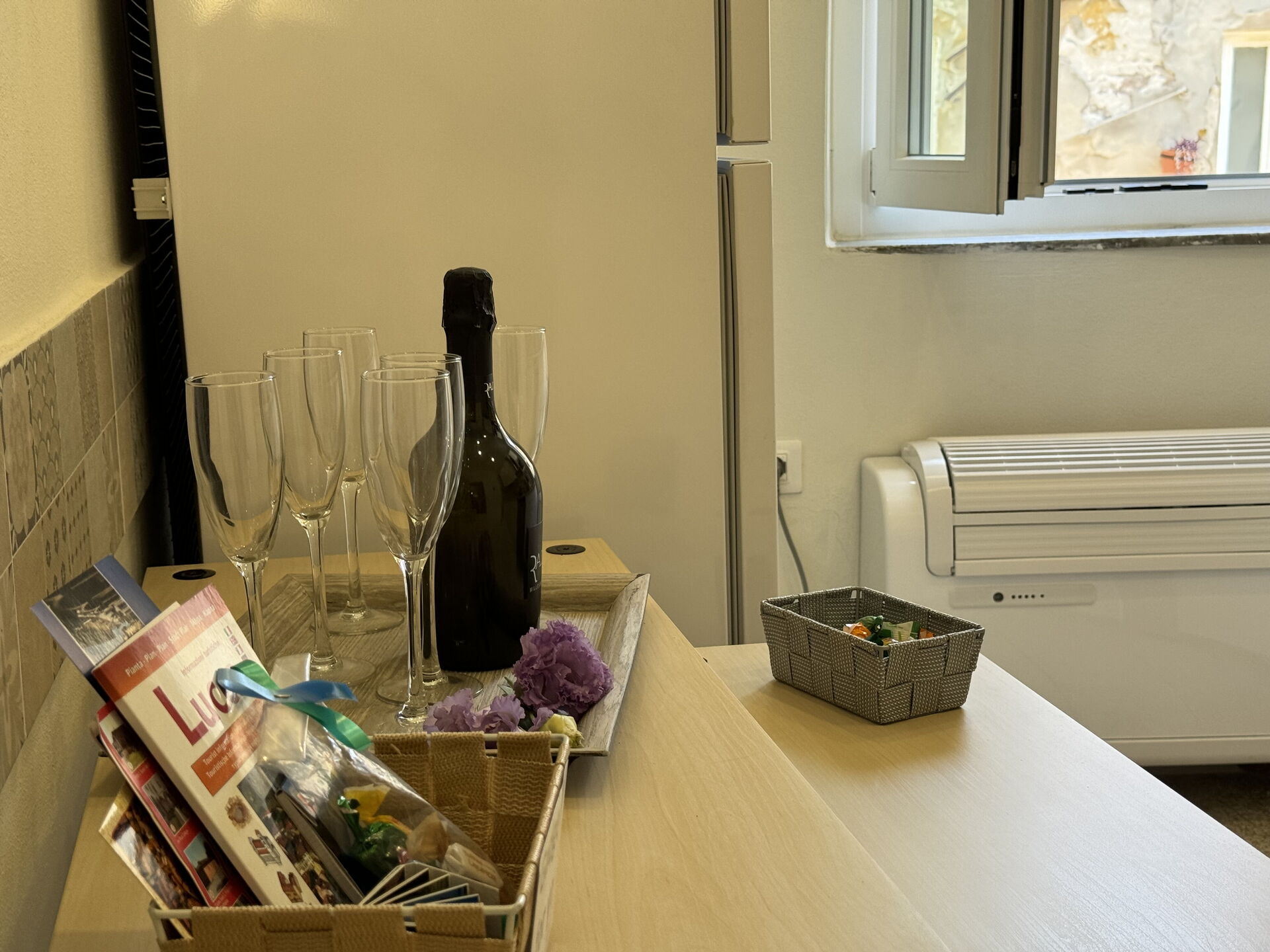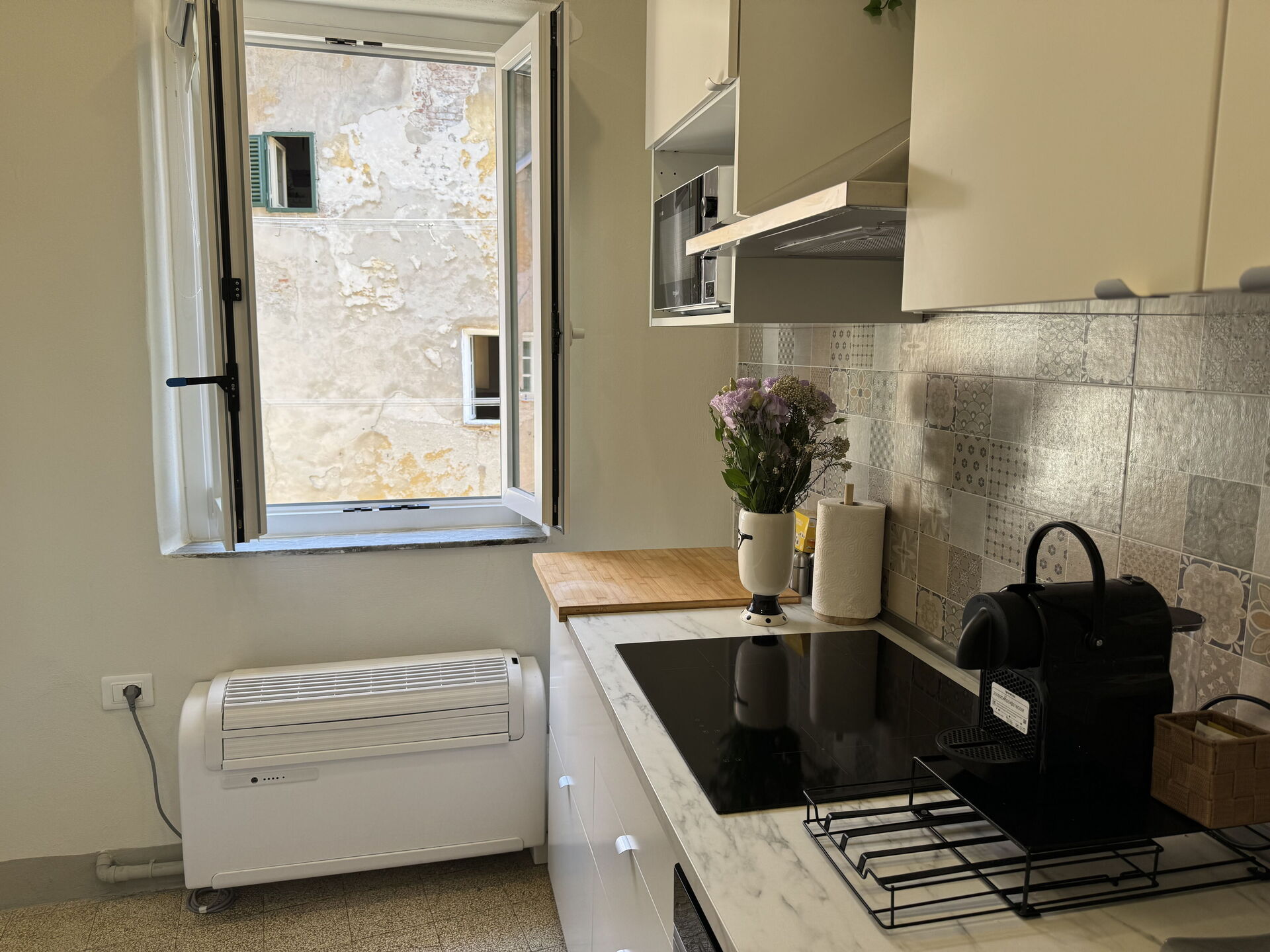 After arriving you’ll find a nice clean well-maintained property with views of the city ideal for a splendid holiday in Tuscany. Regardless of how you spend your days - sightseeing, shopping, visiting museums or just driving in the countryside, when you arrive home you can relax with your family and friends for a perfect ending to another day in Tuscany. If you enjoy cooking for family and friends there is a well-equipped kitchen including coffee machine, microwave, toaster, stove and refrigerator, as well as, plenty of tableware and cutlery for up to five people.