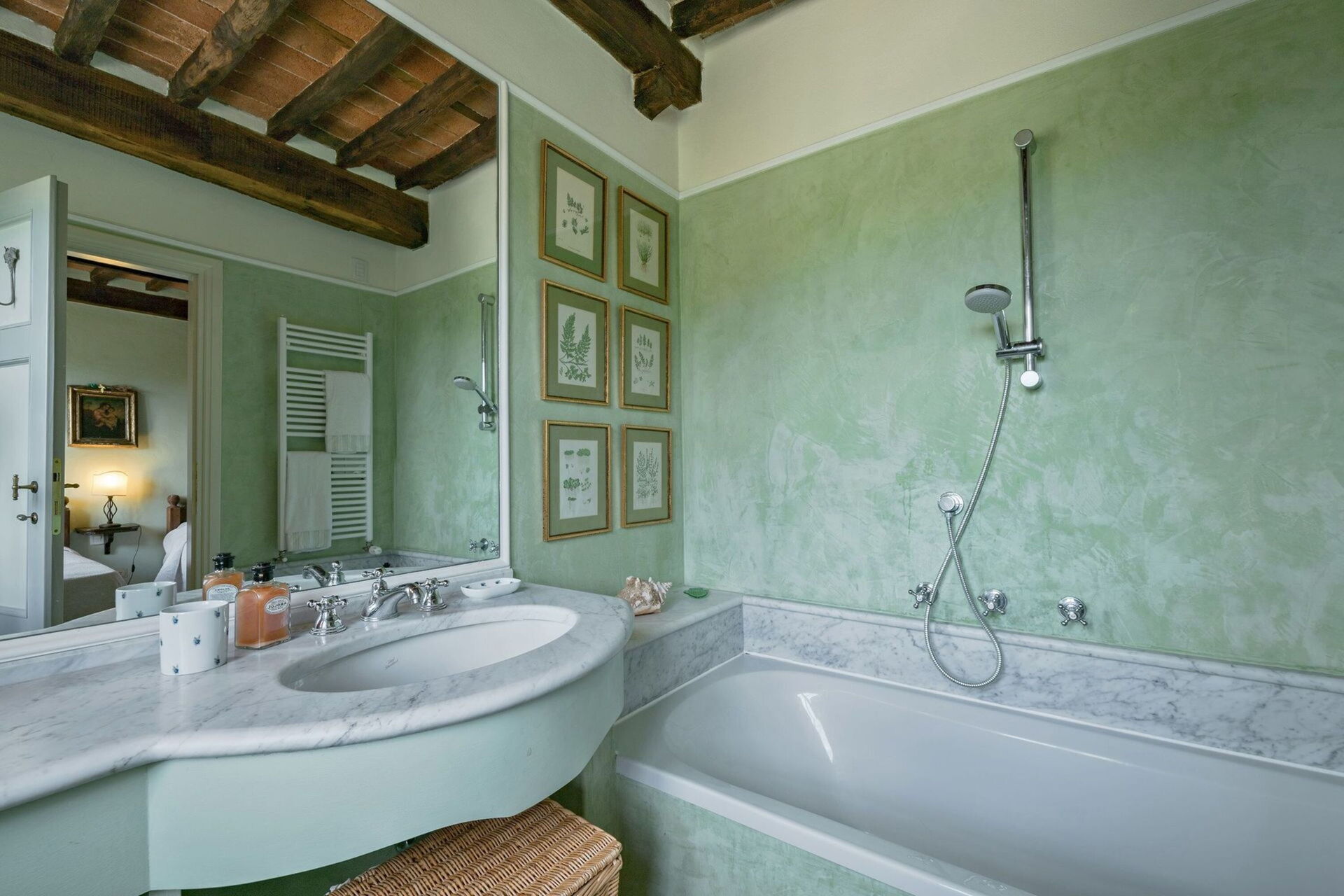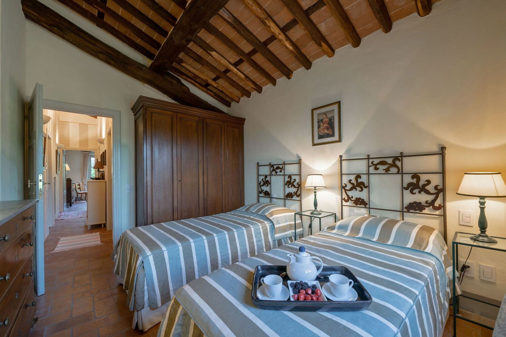 Originally built in the 18th century, the villa has been renovated while maintaining intact the typical characteristics of Tuscan rural buildings (original stone walls, wooden beams and red terracotta floors). Internally the property is furnished in an elegant style creating a clever mix of modern/functional furnishings and antique pieces.