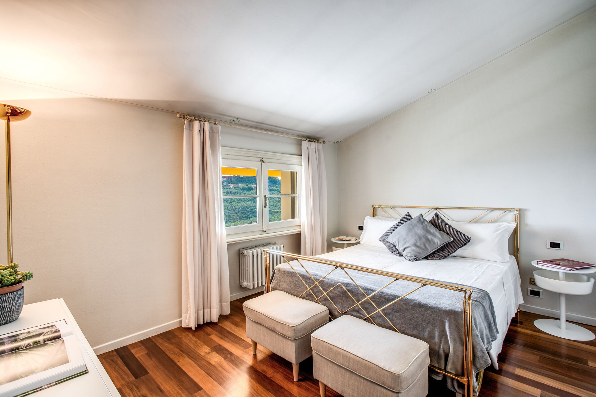 Bedroom + Ensuite Bathroom (60 m2): king size bed (length: 2.1m, width: 2m), WIFI internet, air conditioning, satellite tv, armchair, working desk, basin, toilet, bidet, shower, hairdryer, exit to the patio.