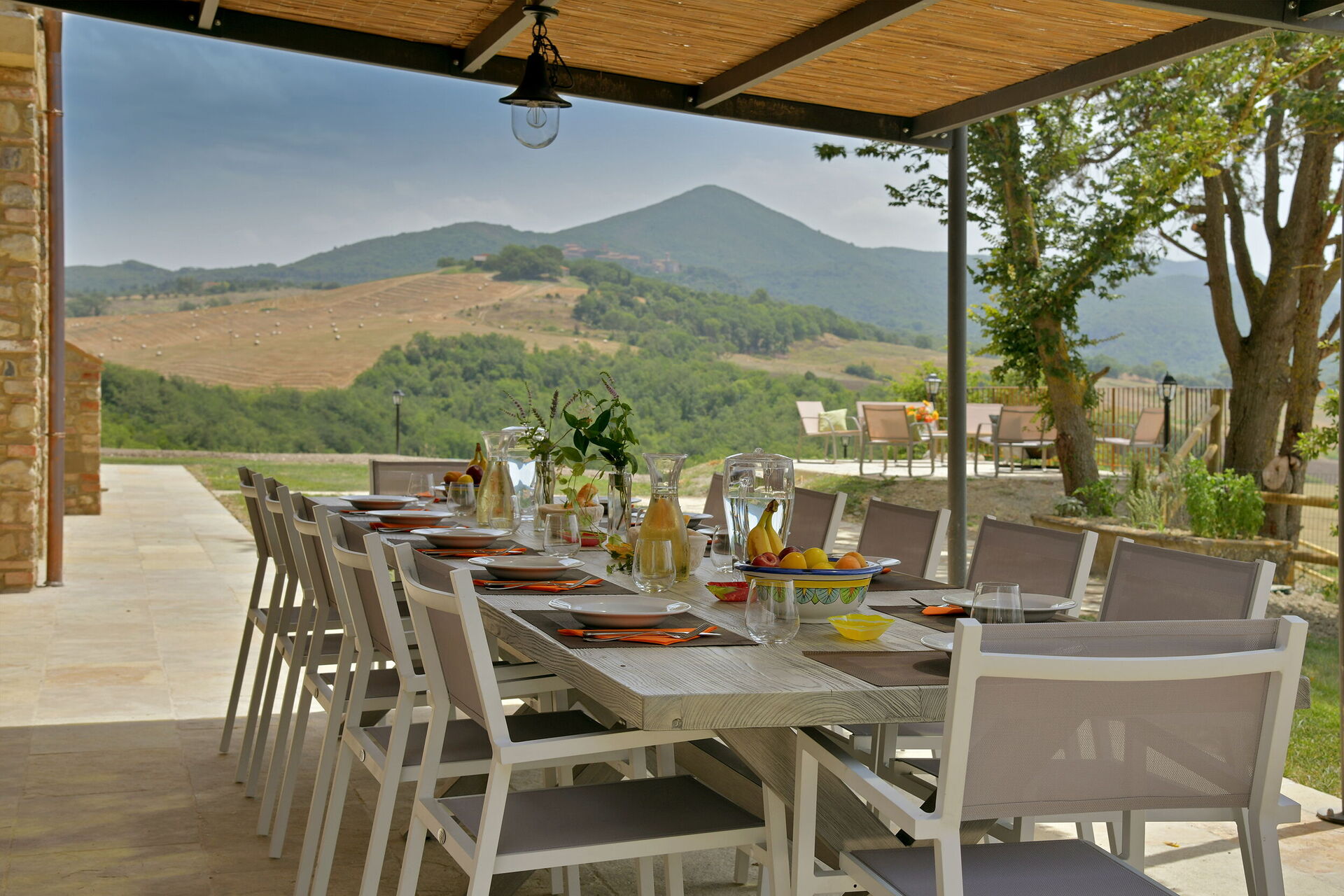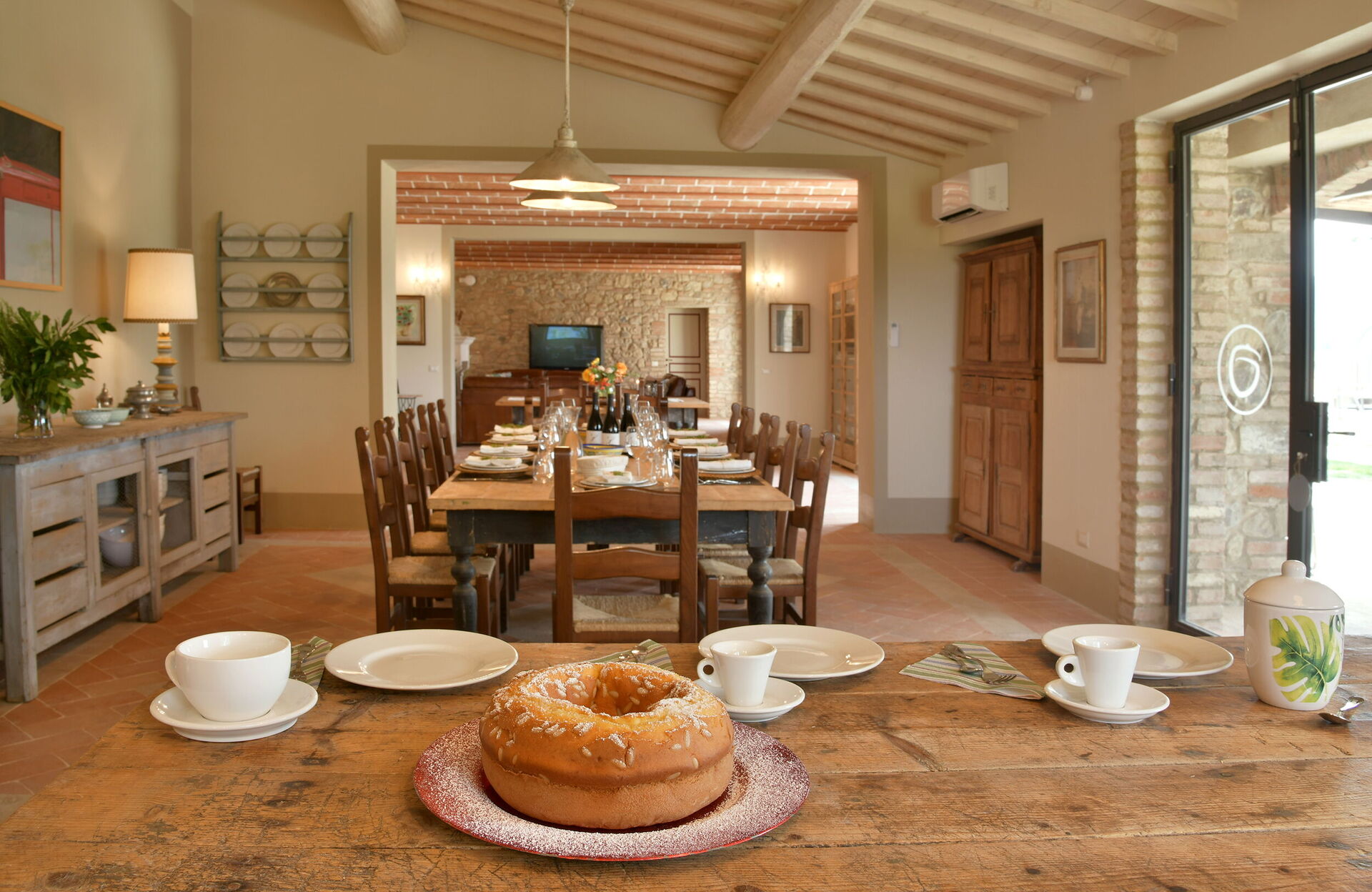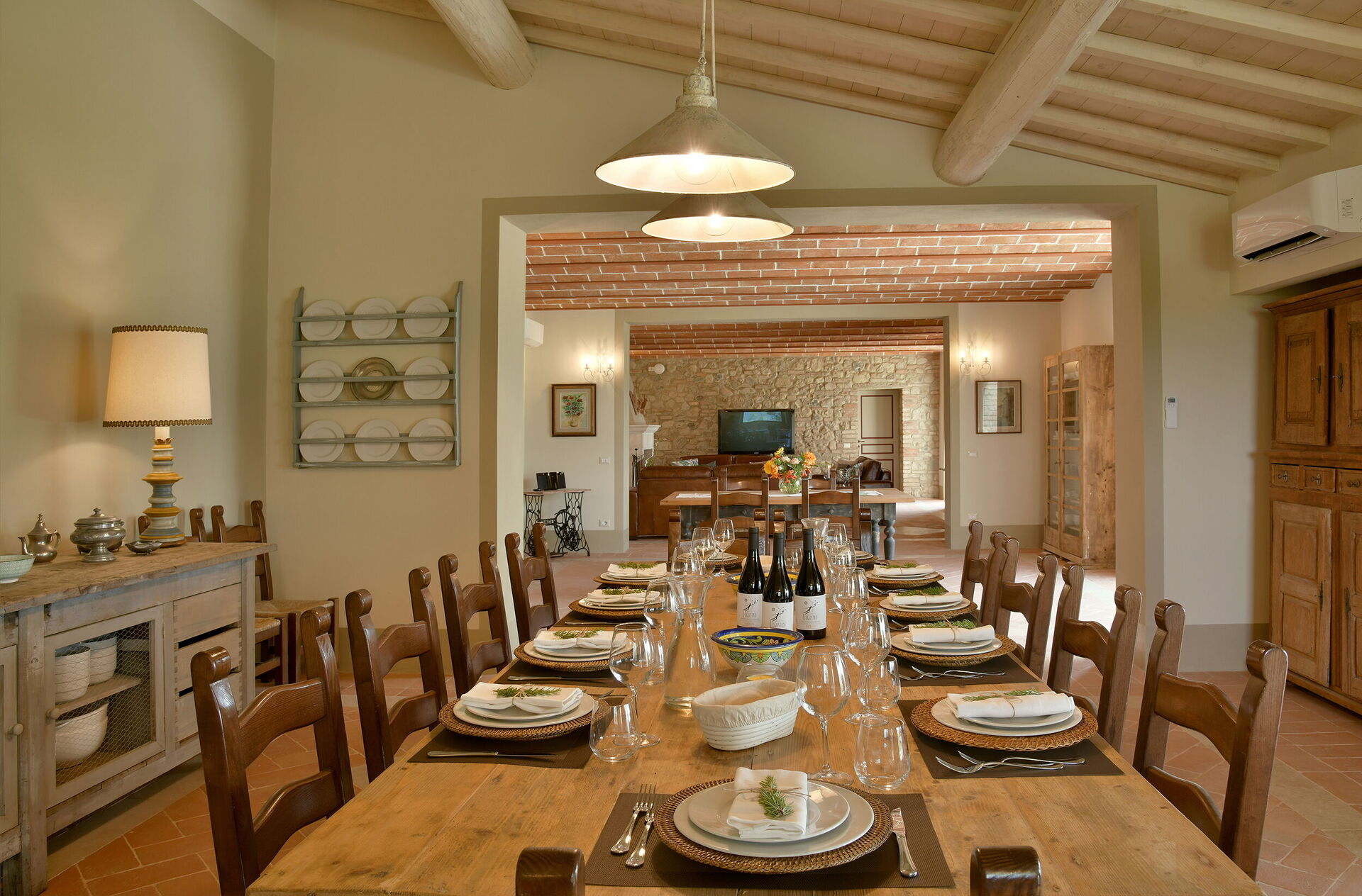 When you arrive you will be greeted by the owner or manager where you’ll find a lovely clean well-maintained property with views of the hills perfect for a peaceful vacation in Tuscany. After a busy day of sightseeing, spend some time with friends and family poolside enjoying a glass of wine - a perfect way to relax at the end the day. Sharing a meal with friends and family is a big part of the Tuscan culture. Take advantage of the well-equipped kitchen to prepare meals using local produce while on your holiday. The kitchen includes coffee machine, microwave, toaster, stove and refrigerator, as well as, plenty of tableware and cutlery for up to 12 people.