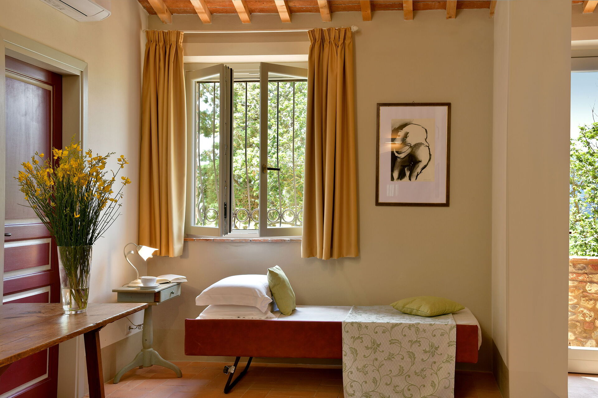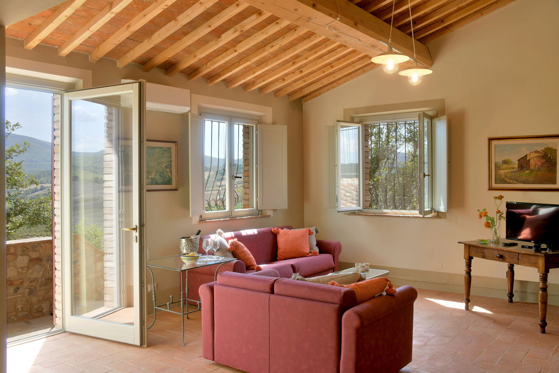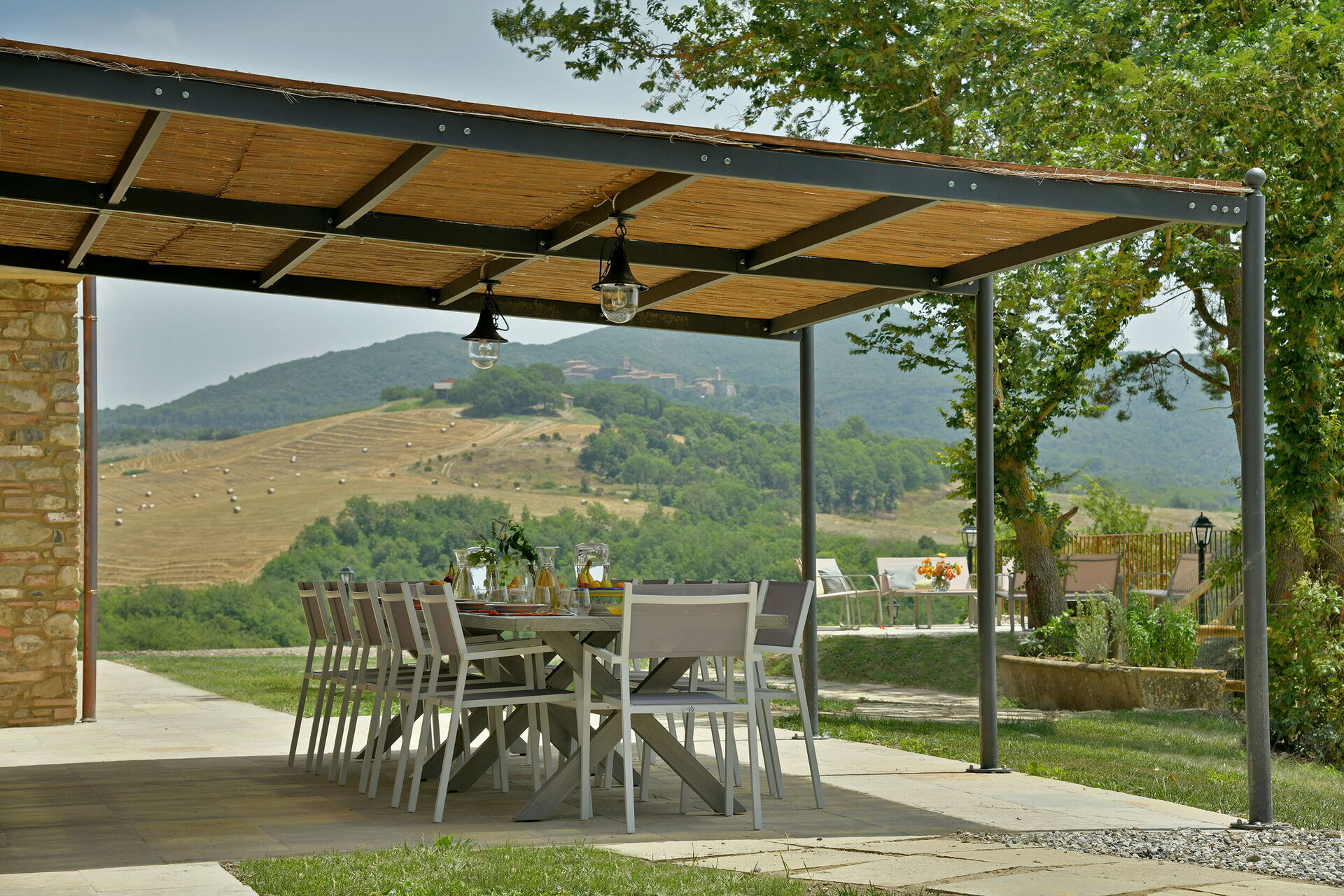When you arrive you will be greeted by the owner or manager where you’ll find a lovely clean well-maintained property with views of the hills perfect for a peaceful vacation in Tuscany. After a busy day of sightseeing, spend some time with friends and family poolside enjoying a glass of wine - a perfect way to relax at the end the day. Sharing a meal with friends and family is a big part of the Tuscan culture. Take advantage of the well-equipped kitchen to prepare meals using local produce while on your holiday. The kitchen includes coffee machine, microwave, toaster, stove and refrigerator, as well as, plenty of tableware and cutlery for up to 12 people.