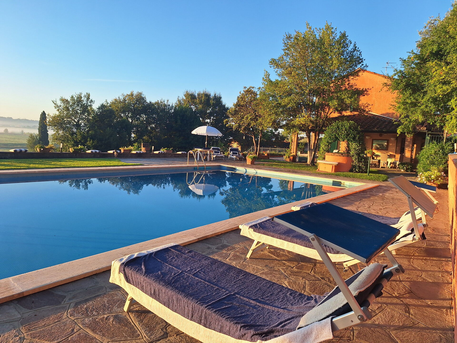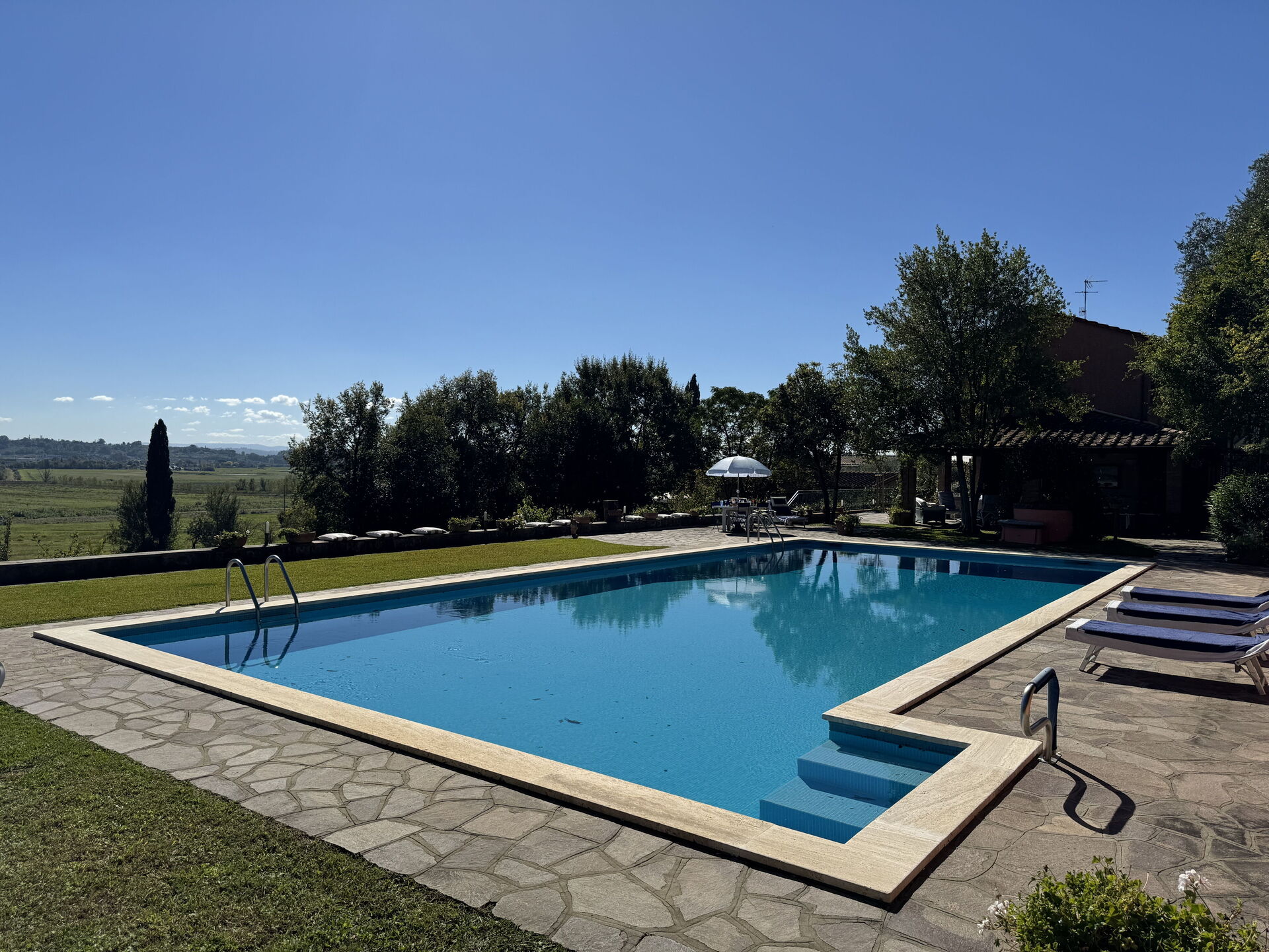 When you arrive you’ll find a lovely clean well-maintained property with views of the hills ideal for a splendid vacation in Tuscany. For your enjoyment you will find a private pool where you can unwind while enjoying a nice cold beverage after a hectic day of visiting museums. For your pleasure, on the grounds there is a barbecue grill and playground.