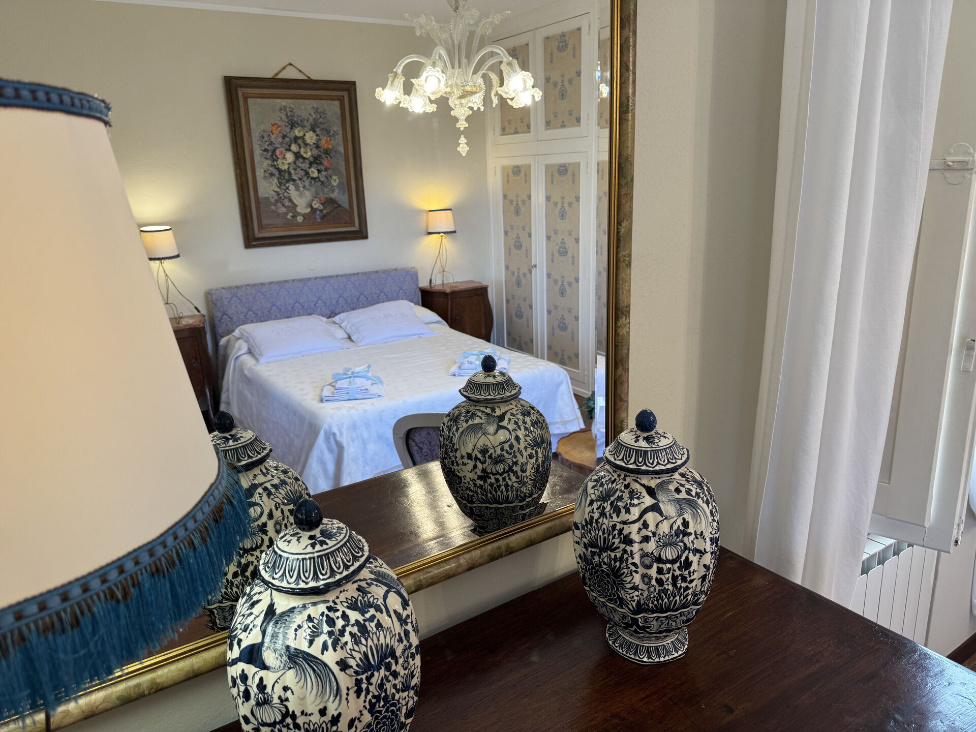 Bedroom + Ensuite Bathroom: double bed, air conditioning, mosquito net, armchair, basin, toilet, bidet, bathtub.